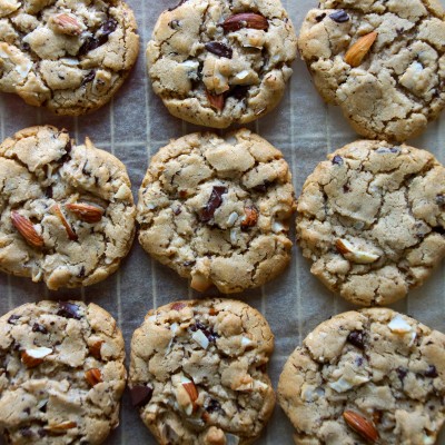 Almond Butter, Dark Chocolate & Coconut Cookies April 9, 2013 | posted by Sarah | Leave a Comment almond butter cookies, almond joy cookies, chewy almond cookies, almond butter chocolate chip cookies Google+