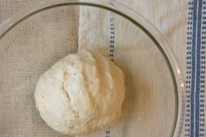 Dump it onto the counter and quickly knead until smooth and manageable. Place in an oiled bowl, cover, and let the dough rise until it doubles in volume.