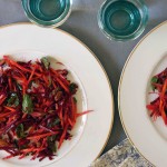 So why is this salad so great? Well, first of all it’s drop-dead gorgeous, a 10+, for sure. It’s incredibly fresh and vibrant, not just in color, but flavor and texture, as well. It’s the kind of healthy eating that satisfies your taste buds and reminds you that winter does have something to offer beyond squash and braised meat. I think my jeans will be thankful for the reminder.