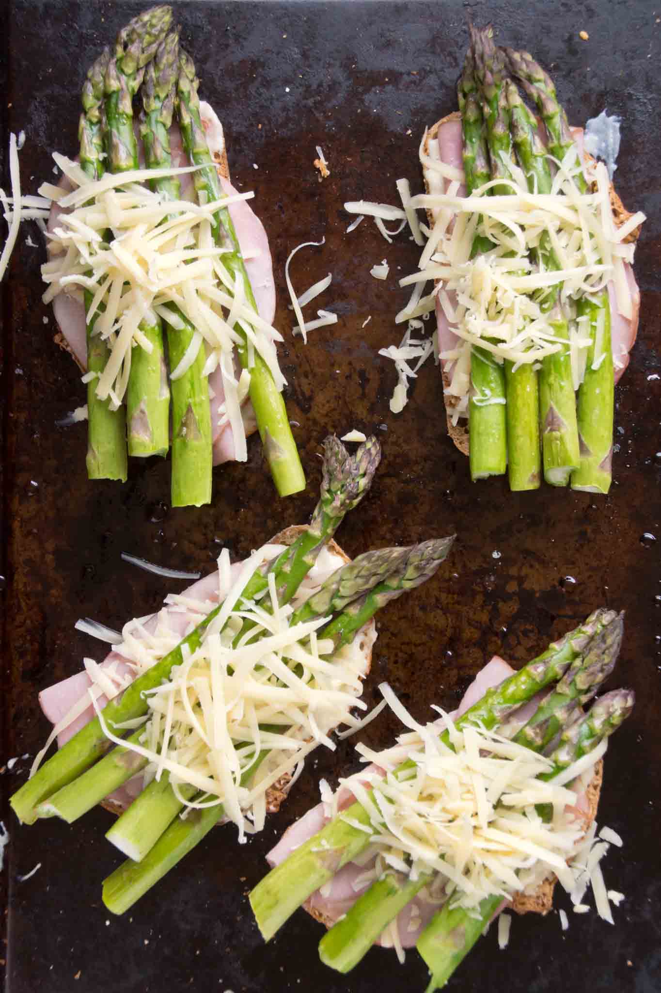 asparagus croque madame, asparagus croque monsieur, ham asparagus sandwich, sandwich ham bechamel cheese egg, recipe, strawberryplum