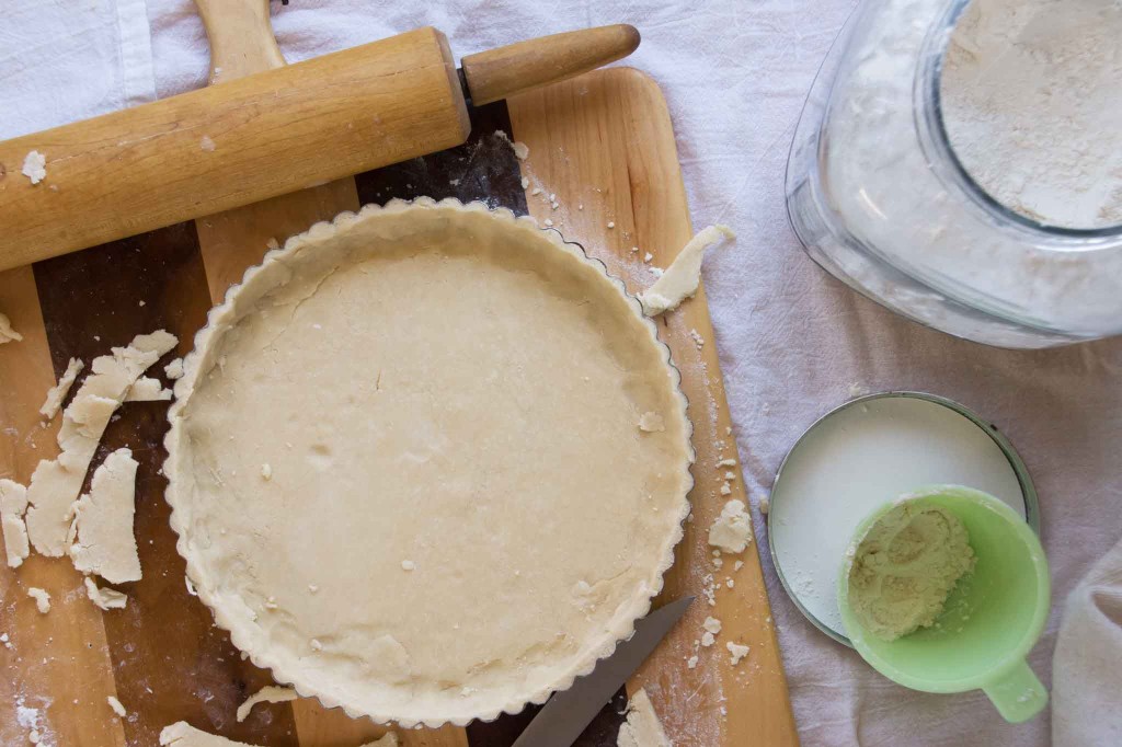 - After the dough has chilled, roll it out to fit a 9 inch tart pan with removable bottom. Press the dough into the pan and trim the edges. Chill the tart shell for at least 30 minutes.