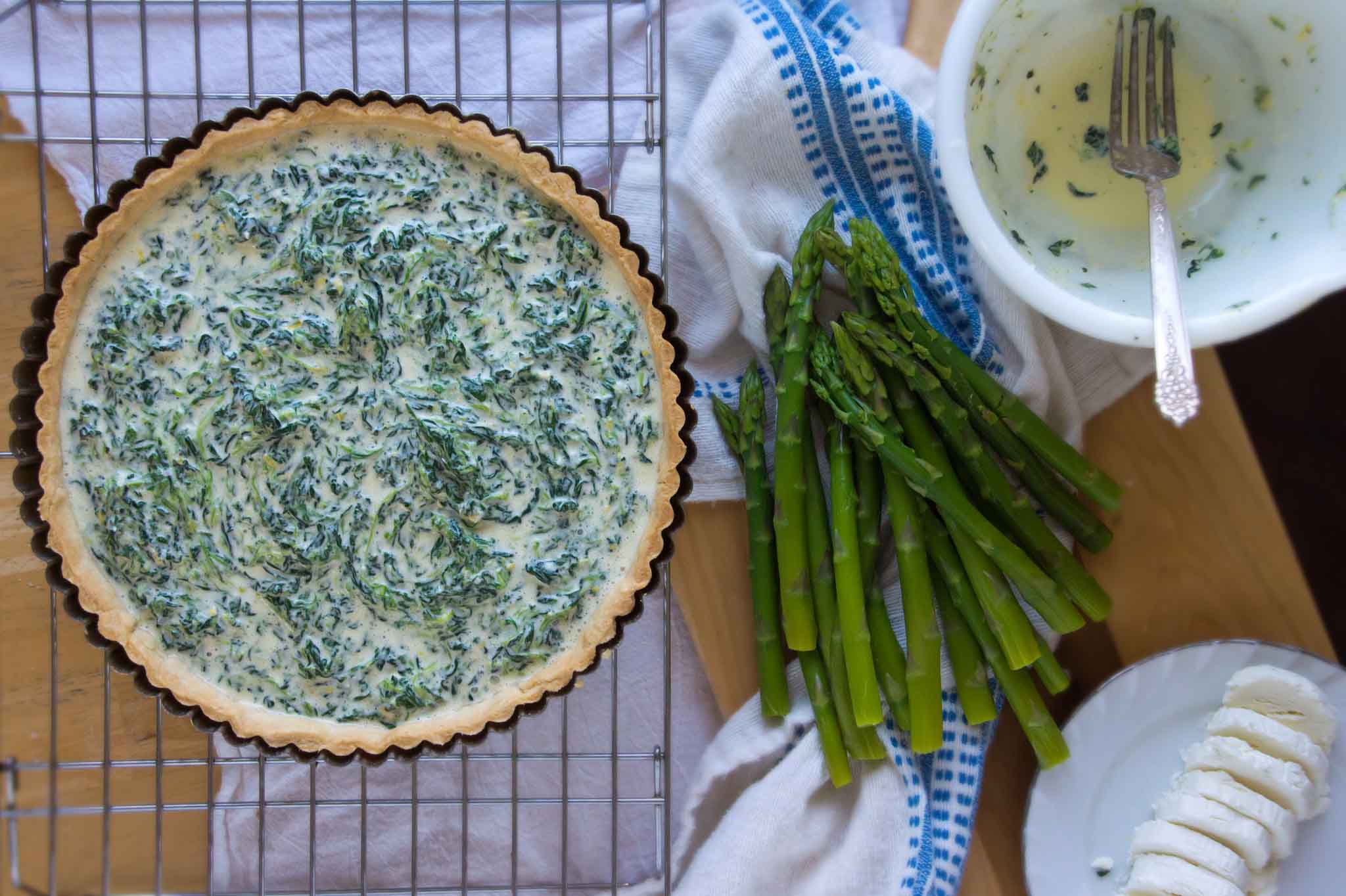 Filled Tart Shell April 14, 2014 | posted by Sarah | Leave a Comment asparagus chèvre tart, asparagus chèvre quiche, spring vegetable tart, asparagus goat cheese tart, asparagus goat cheese quiche, asparagus spinach tart, asparagus spinach quice, pate brisee, strawberry plum, recipe Google+