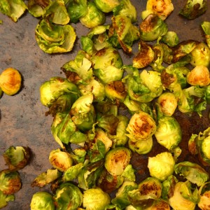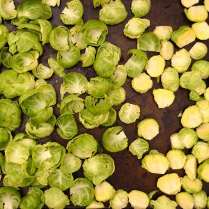 There’s nothing to this. Get the Brussels sprouts roasting. I pull off a couple outer layers of leaves and then cut the inner-sprout in half. The leaves will be crunchy, brown, and nutty and the sprout halves will be caramelized with just a little bite. Having them retain a little bite is very important. Mushy Brussels sprouts make people think they hate Brussels sprouts and we certainly don’t want that.