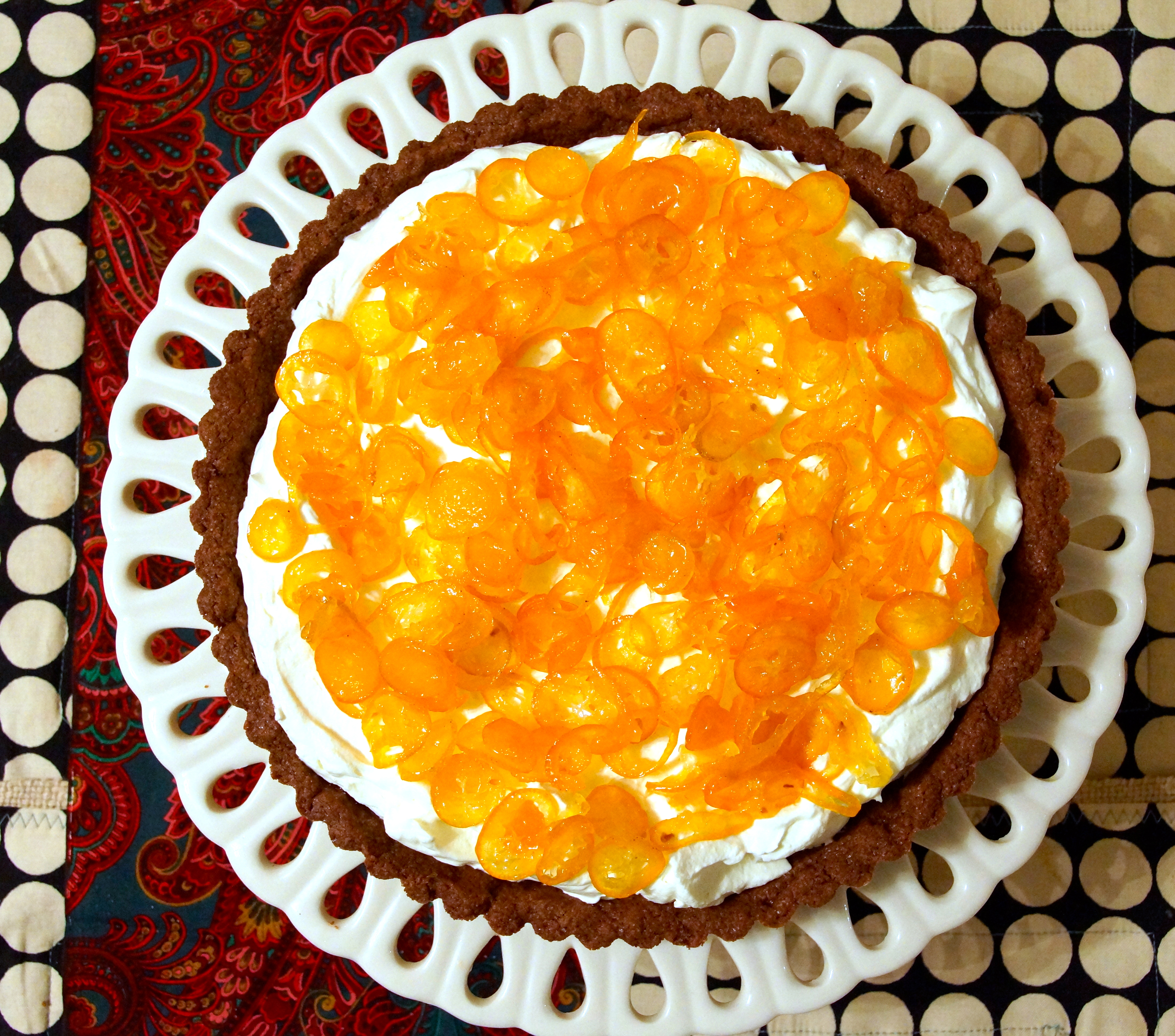 Candied Kumquat & Mascarpone Tart with Spiced Chocolate Crust December 14, 2012 | posted by Sarah | Leave a Comment kumquat, cinnamon, clove, anise seed, chocolate, mascarpone, tart, pie, recipe, strawberryplum Google+