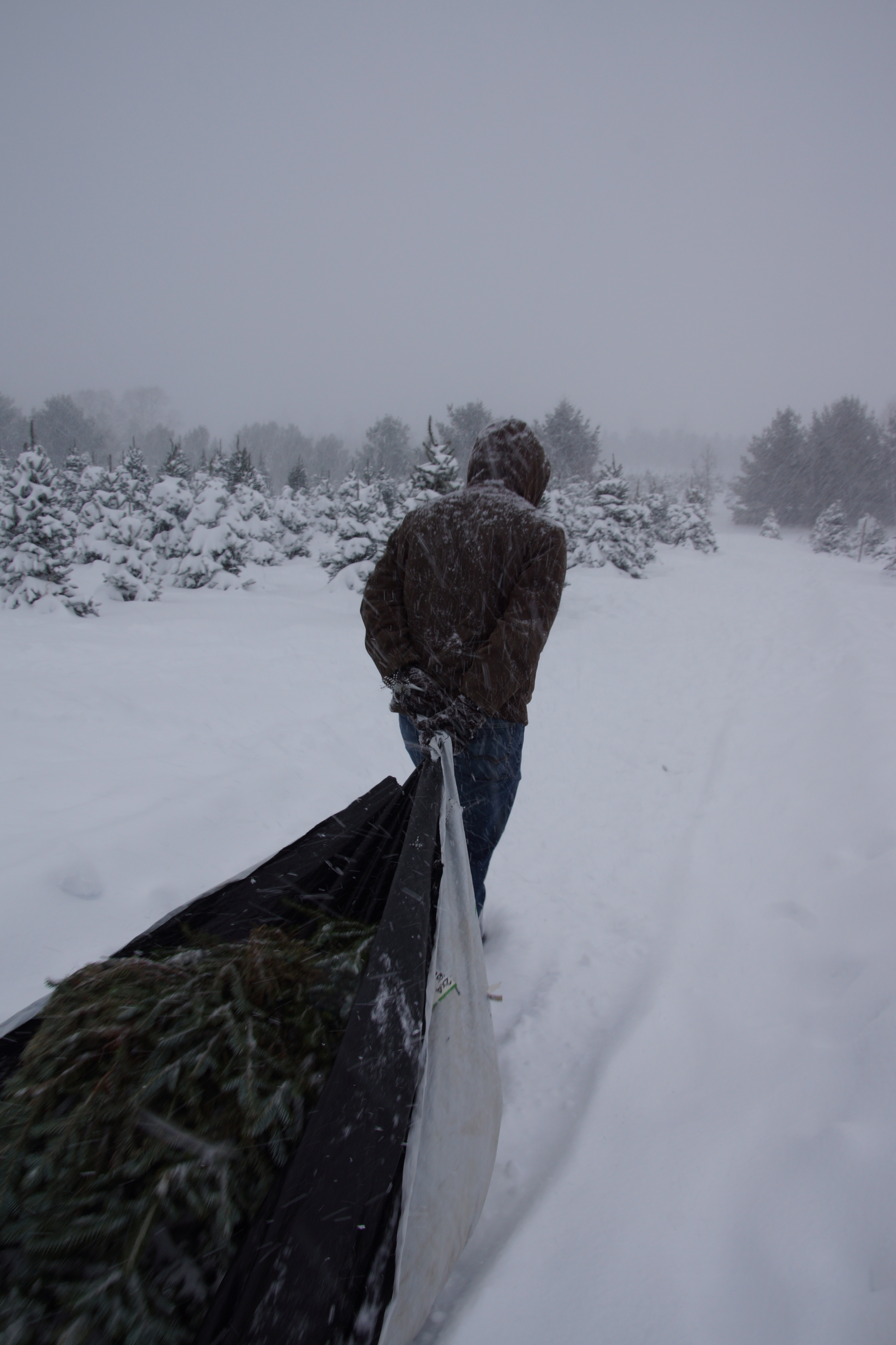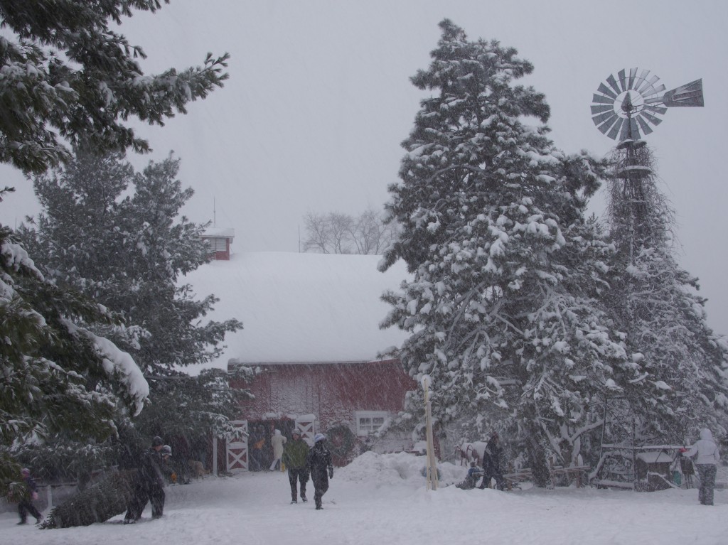 Then on Sunday, Matt and I drove a hundred miles over (two) rivers and through the woods arriving at a terribly charming Christmas tree farm.  I should add that we were traveling in near white-out conditions through a real-life winter wonderland, while rockin’ out to some holiday tune-age.