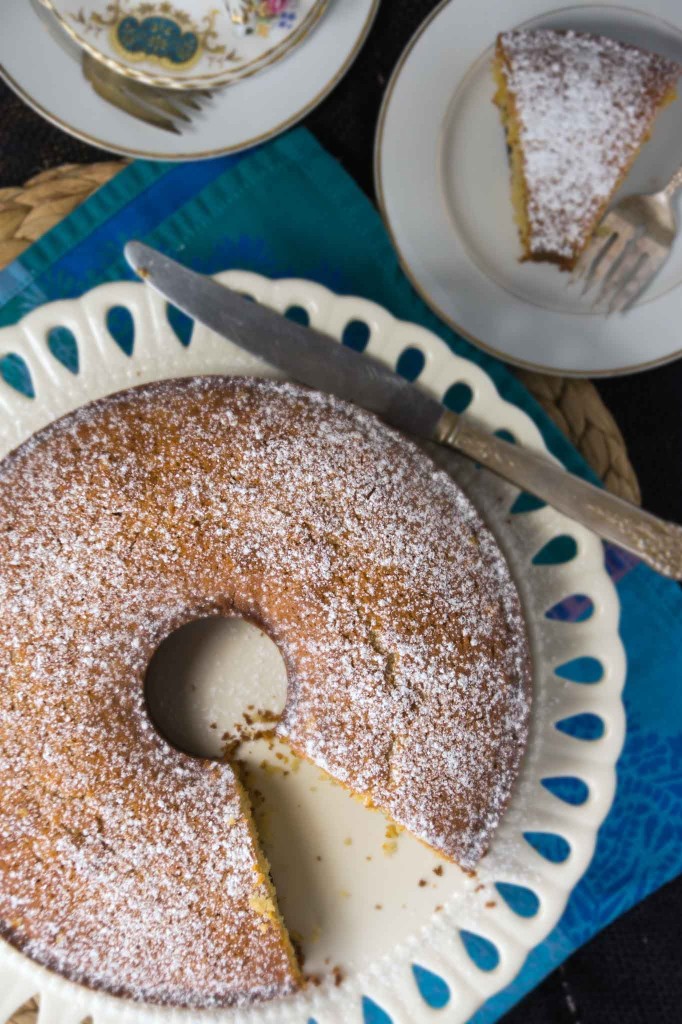 Let the cake cool on a rack, then dust it with powdered sugar and cut it into wedges. The olive oil keeps the cake moist, Marsala and the touch of citrus make it fragrant, and the bits of chewy cherries here and there differentiate one bite from the next. It’s the sort of cake I want to eat with my morning coffee, my afternoon tea, and my evening glass of wine.