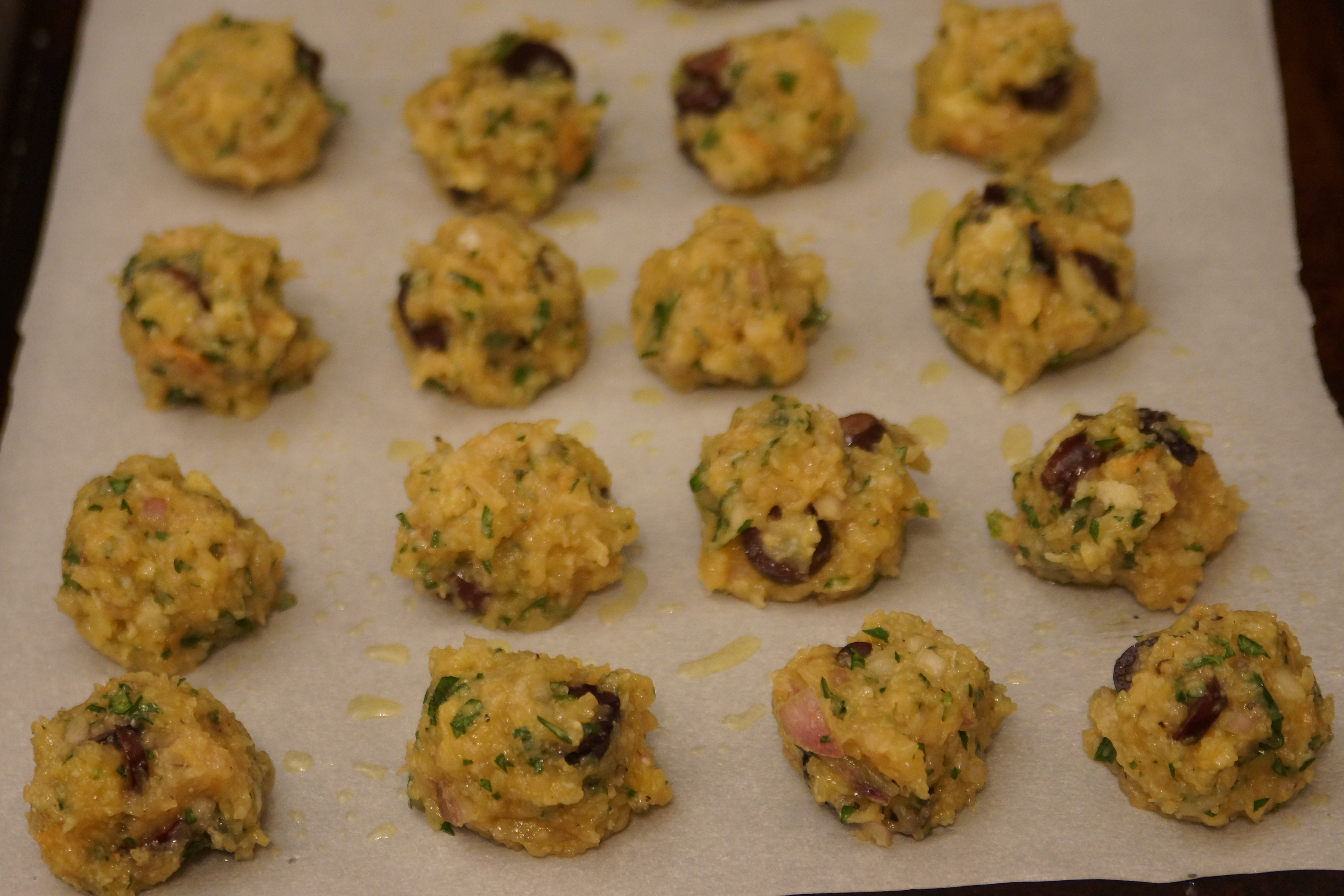 - Place meatballs on parchment-lined baking sheet and drizzle with a little olive oil, if desired (this will give them nicer color). Bake 15-20 minute, depending on their size.