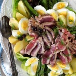 Most of my pasta salads are made in the same vein –about half pasta, half “good stuff”, normally dressed with a perky vinaigrette rather than mayonnaise. This one takes on a kind of Niçoise theme with flakes of tuna, blanched green beans, halved grape tomatoes, and a handful of capers. Chickpeas add enough substance that this could definitely pass as dinner, not just a side.