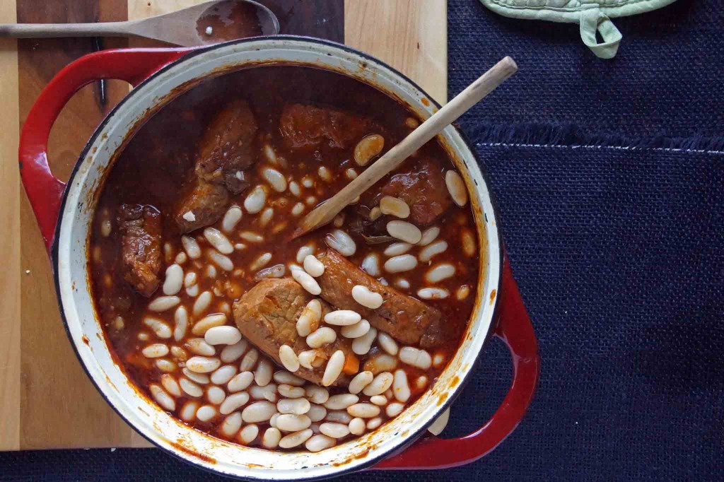 Once you’ve gotten to this point, you should get your beans cooking.  Drain them from the water they’ve soaked in, put them in a saucepan with fresh water, and simmer.  When the beans are cooked, your ribs should be well on their way to being totally tender.  Add the beans to the braising pork and let the flavors marry for a final half hour simmer.