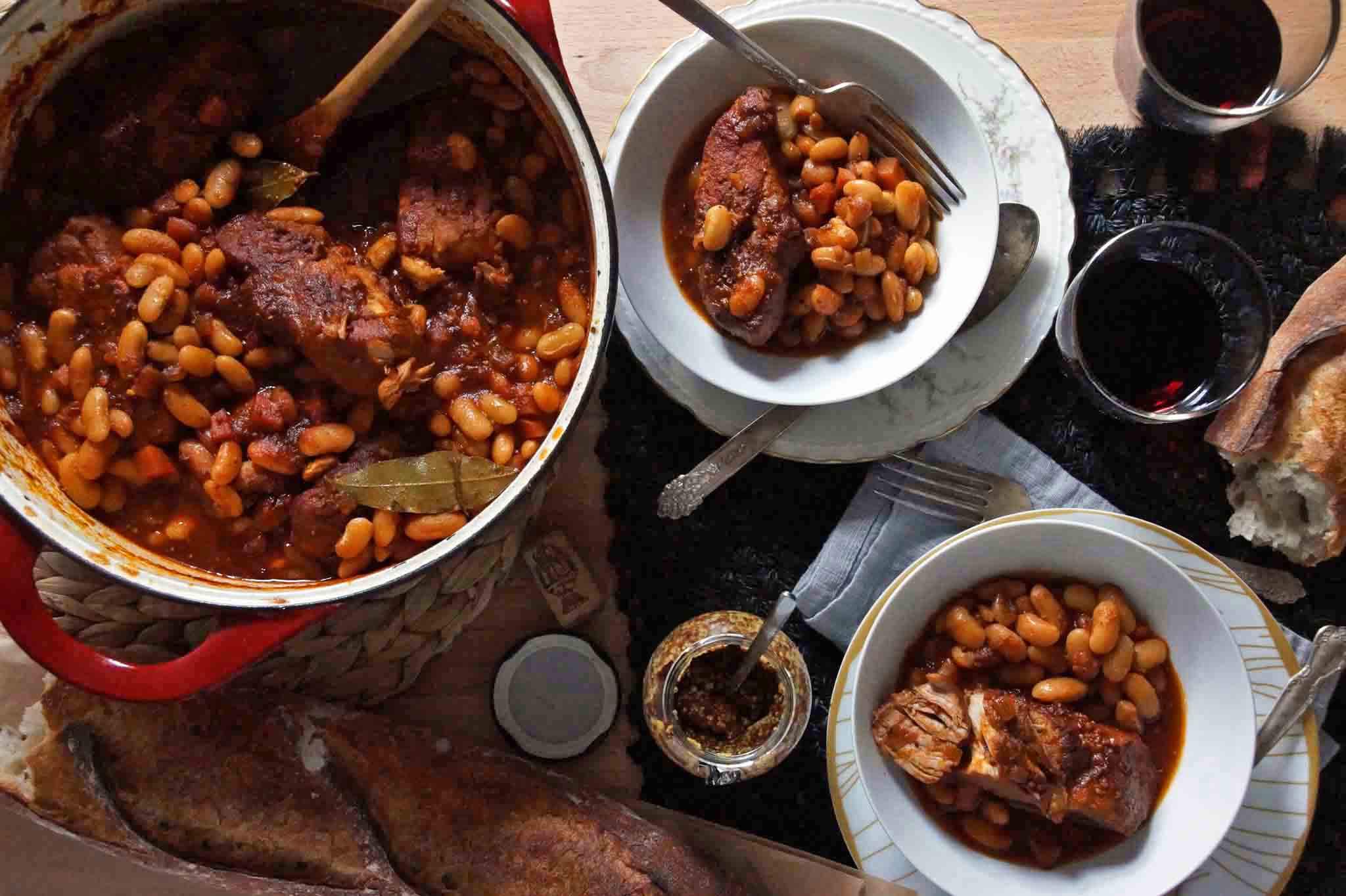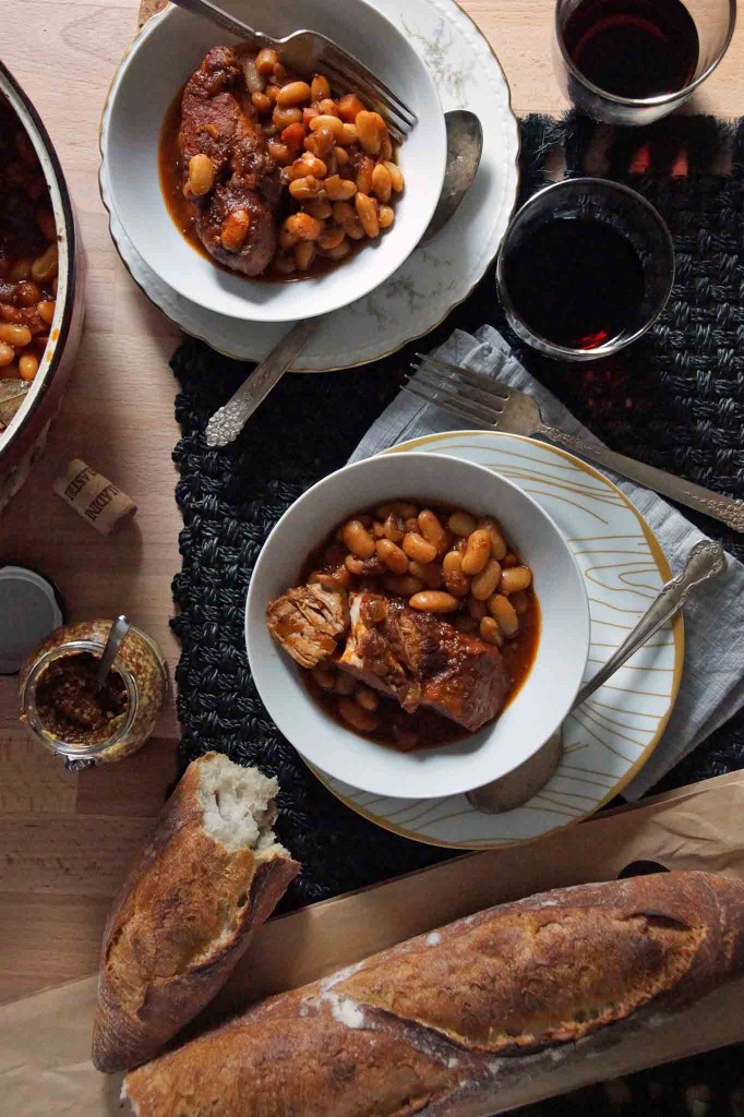 Beans and Pork RibsTime to eat!  Serve the beans and pork ribs over soft parmesan polenta or on their own, with a hunk of crusty bread, a little extra mustard, and a big salad.