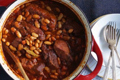 Cider Braised Beans and Pork November 6, 2013 | posted by Sarah | Leave a Comment country style pork ribs, recipe, braised, apple cider, cannellini beans, pork loin, pork shoulder, strawberryplum Google+