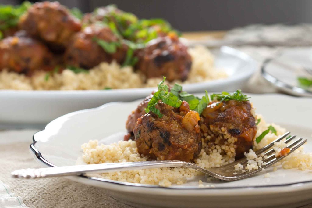 These meatballs are delicious over couscous, with pasta, or in a sandwich. I imagine if you made them tiny, they’d be great as a pizza topping!