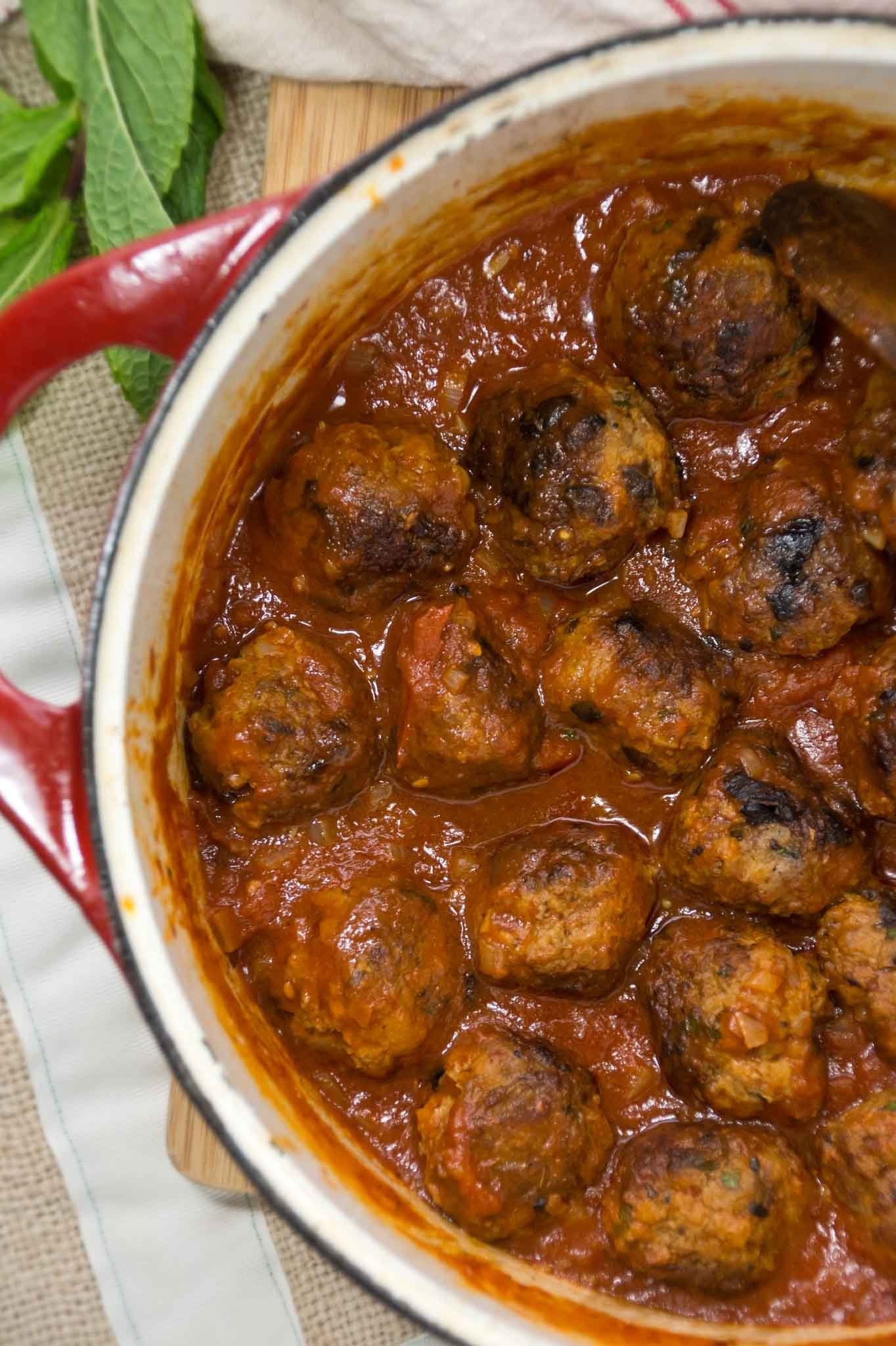 Lamb Meatballs in Tomato Sauce April 22, 2014 | posted by Sarah | Leave a Comment lamb meatballs, mint, coriander, olives, fennel, tomato, recipe, strawberryplum, moroccan, sicilian, mediterranean Google+
