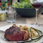 Now, of course, I’ve still had to eat but it’s mostly been a lot of mishmash salads and really simple dinners.  One of my recent favorite simple (and slightly extravagant) dinners was an evening spent on my patio, eating a giant T-bone and a big pot of garlicky Swiss chard and potatoes.  And don’t get me wrong, though the steak was certainly nothing to sneeze at, I think I was actually more upset when I finished my last strand of chard.
