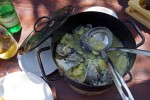 Making blitva doesn’t require much–just a few potatoes, a big bunch of Swiss chard, a few cloves of garlic, and plenty of olive oil.  Peel, chunk, and boil the potatoes while you shred the chard and slice the garlic.