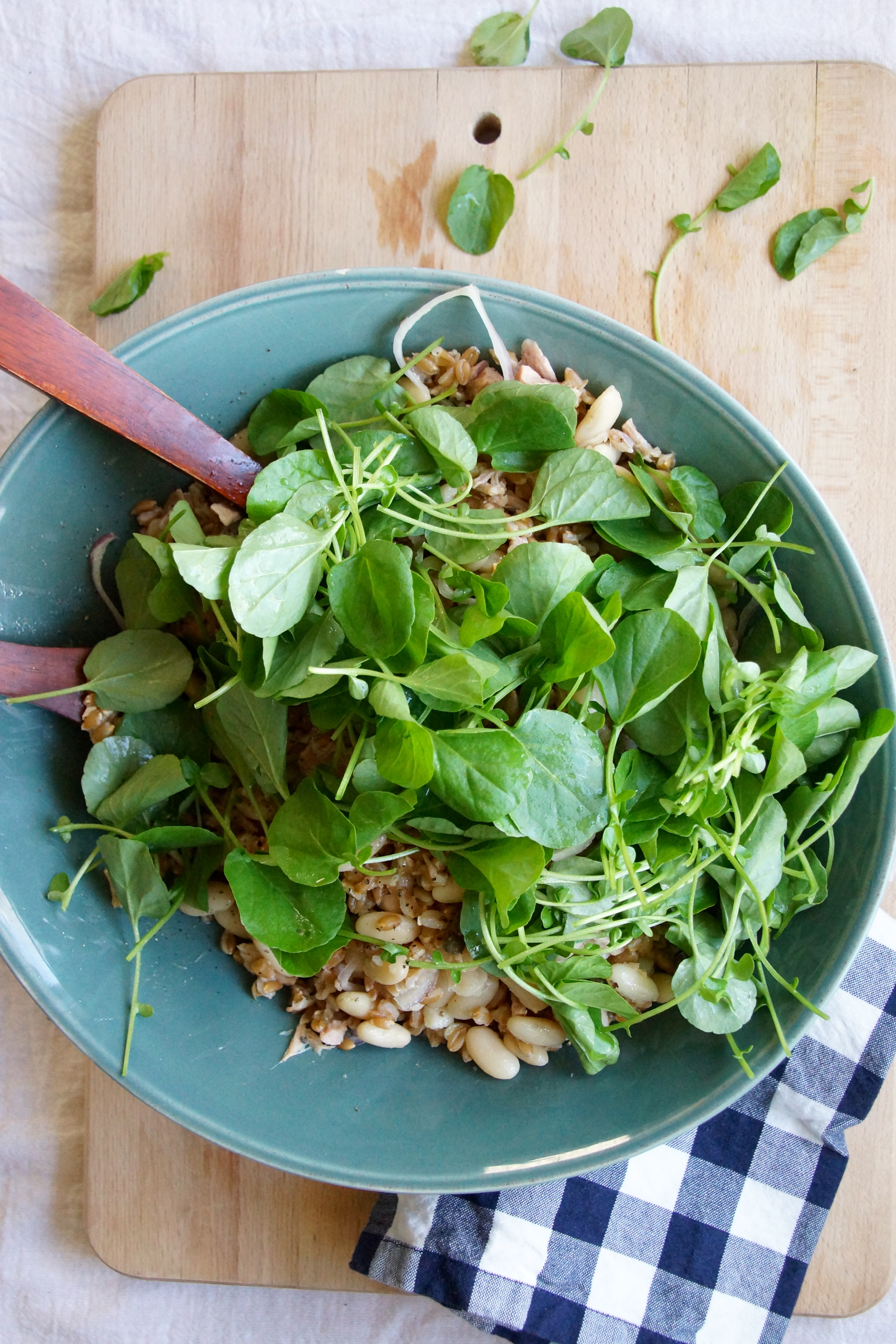 Farro Salad with Tuna, Cannellini Beans & Watercress May 1, 2013 | posted by Sarah | Leave a Comment capers, anchovies, arugula, quinoa Google+