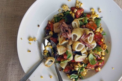 Grilled Calamari, Sweet Corn & Tomato Salad August 22, 2013 | posted by Sarah | Leave a Comment squid, heirloom tomato, recipe Google+