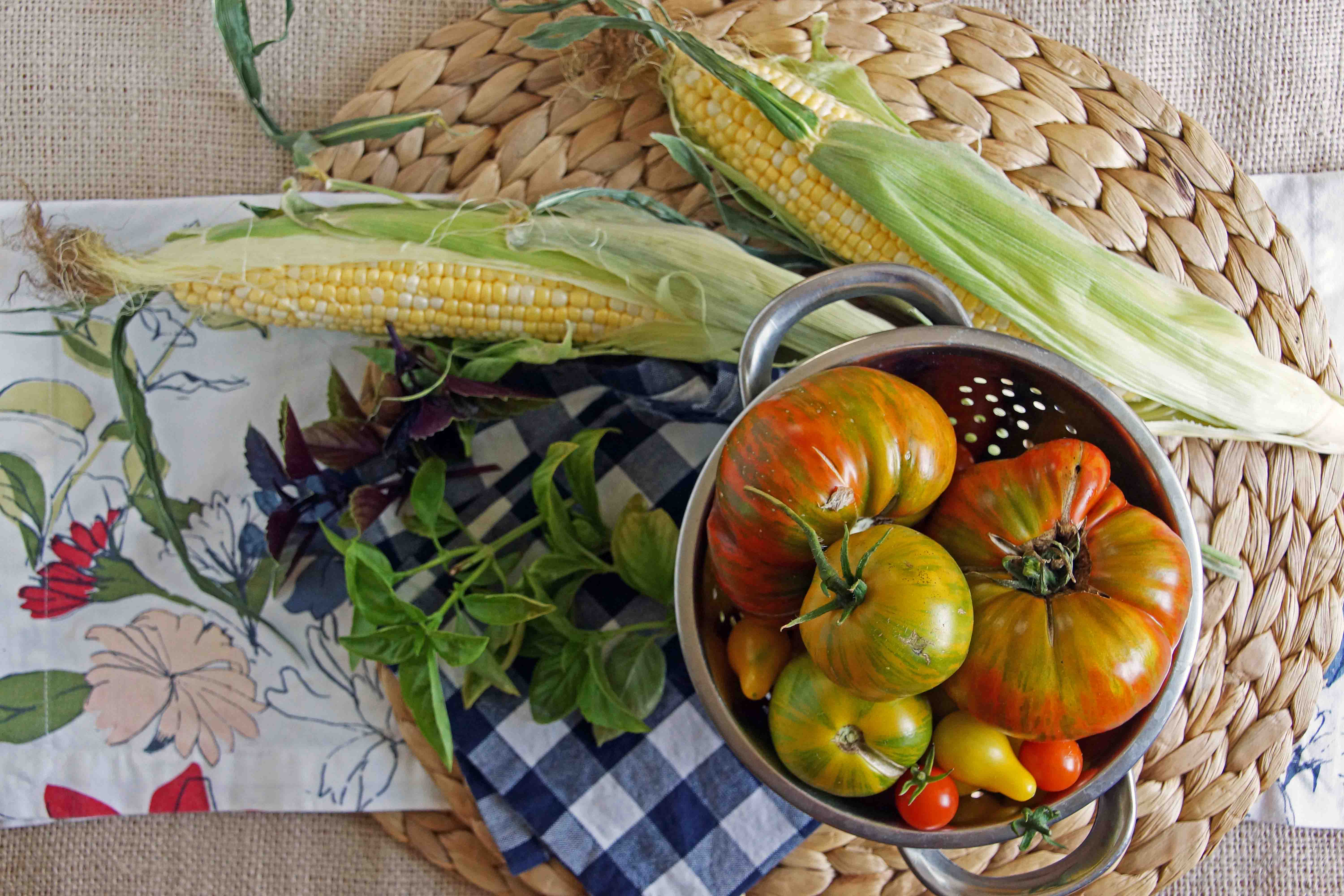 Heirloom Tomatoes, Sweet Corn, Green & Purple Basil August 22, 2013 | posted by Sarah | Leave a Comment Google+