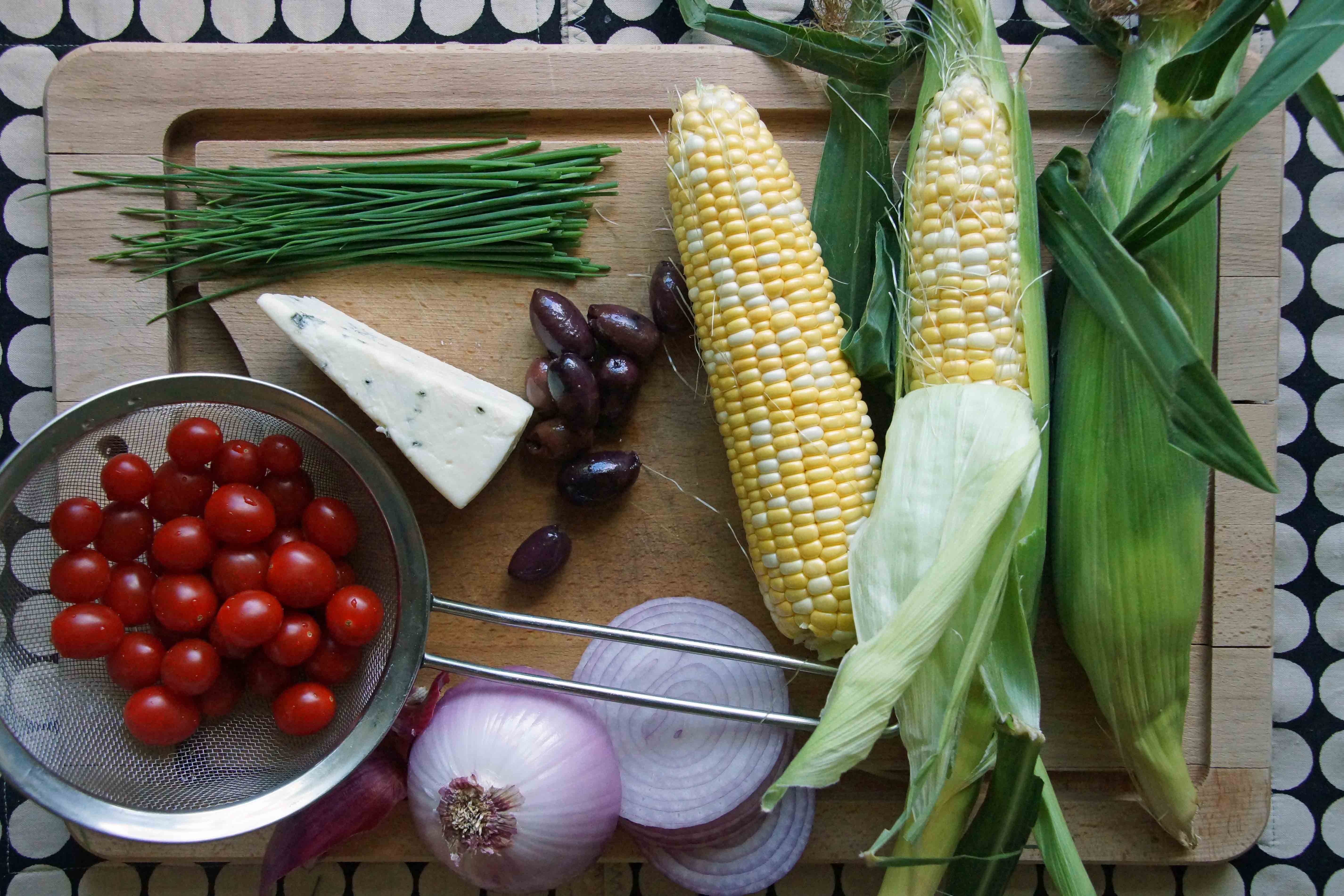 Sweet Corn Relish July 30, 2013 | posted by Sarah | Leave a Comment corn relish, recipe, olives, blue cheese, grilled onion, strawberryplum Google+