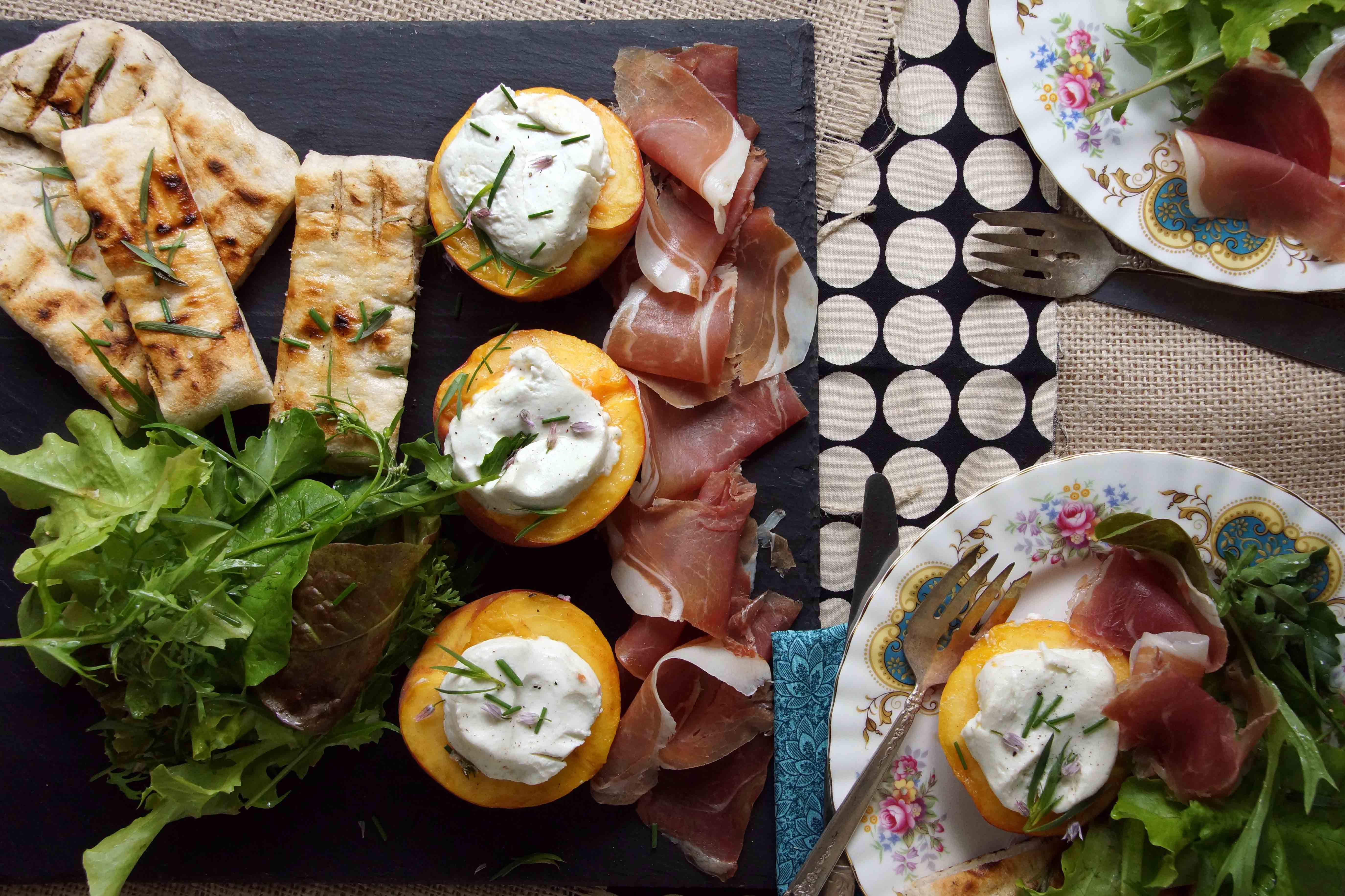Grilled Peaches with Chevre, Mixed Greens & Prosciutto June 25, 2013 | posted by Sarah | Leave a Comment Google+