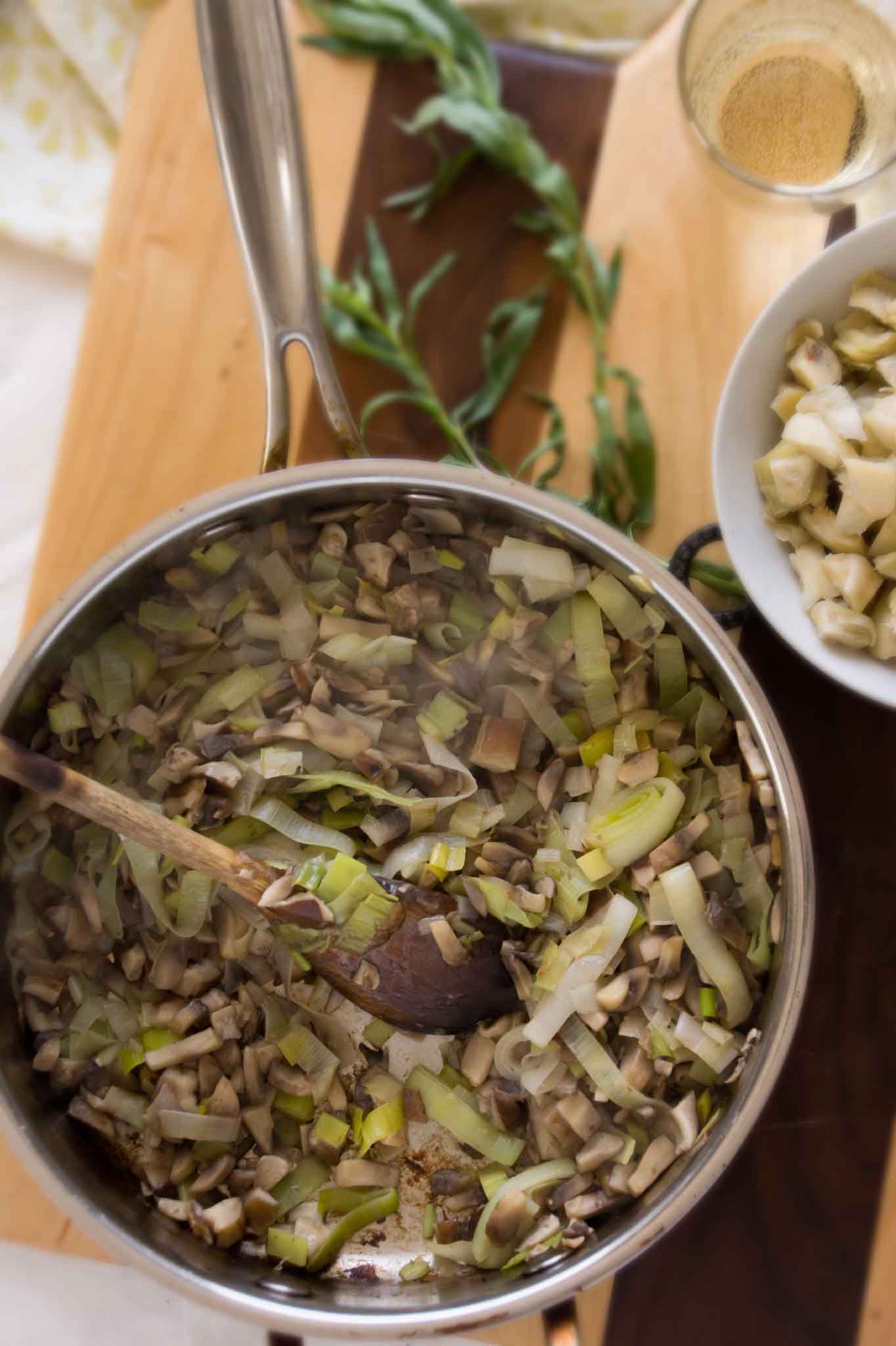 Sauteed Leeks & Mushrooms April 6, 2014 | posted by Sarah | Leave a Comment spring vegetable stuffed shells, vegetable stuffed shells, mushroom stuffed shells, vegetable baked shells, artichoke stuffed shells, vegetarian stuffed shells, strawberryplum stuffed shells Google+