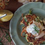 The second recipe, and the one we’re actually going to talk about today, was for savory pea and scallion pancakes. After cleaning out the cupboard, I was still on a bit of a cleaning binge and started weeding through old magazines which. Needless to say, I spent the next hour sprawled out on the living room floor leafing through back issues of Bon Appétit. I came across a spring pea feature and immediately zeroed in on these pancakes. They were light golden with bright green pea polka dots and a smattering of green onions scattered over the top. They looked tender, delicious, and exactly like what I wanted to eat at that precise moment. I scanned the recipe, raided the fridge, and, within 10 minutes, was having a lovely little lunch. Like I said, good fortune.