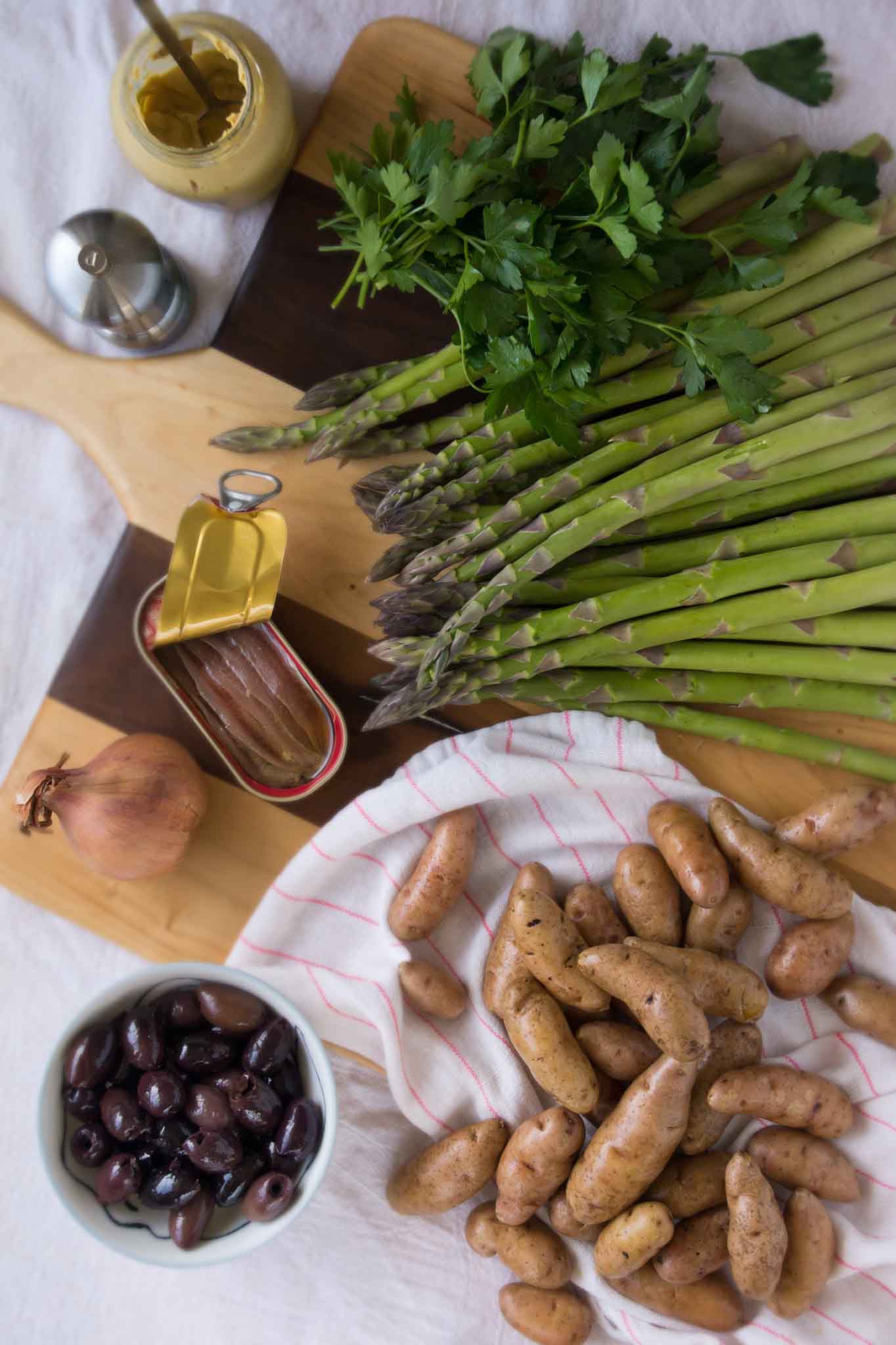 Potato & Asparagus Salad with Black Olive Vinaigrette