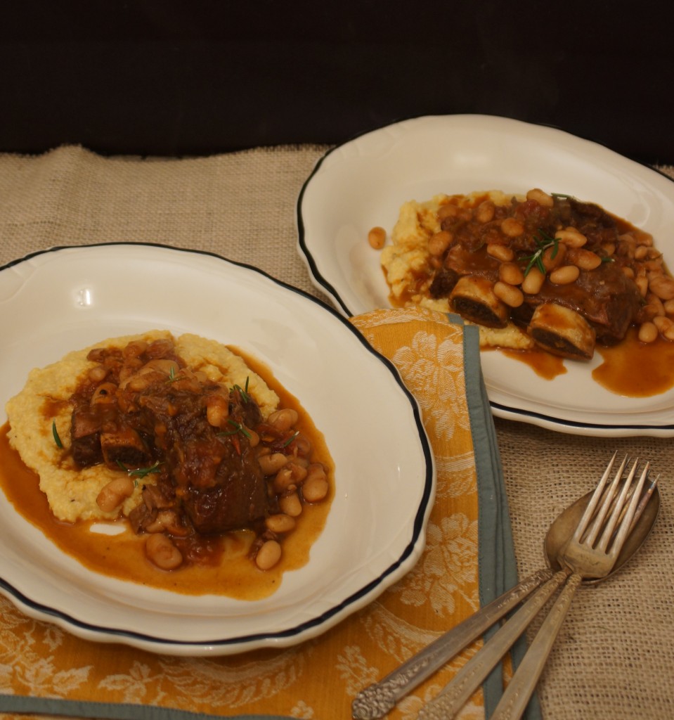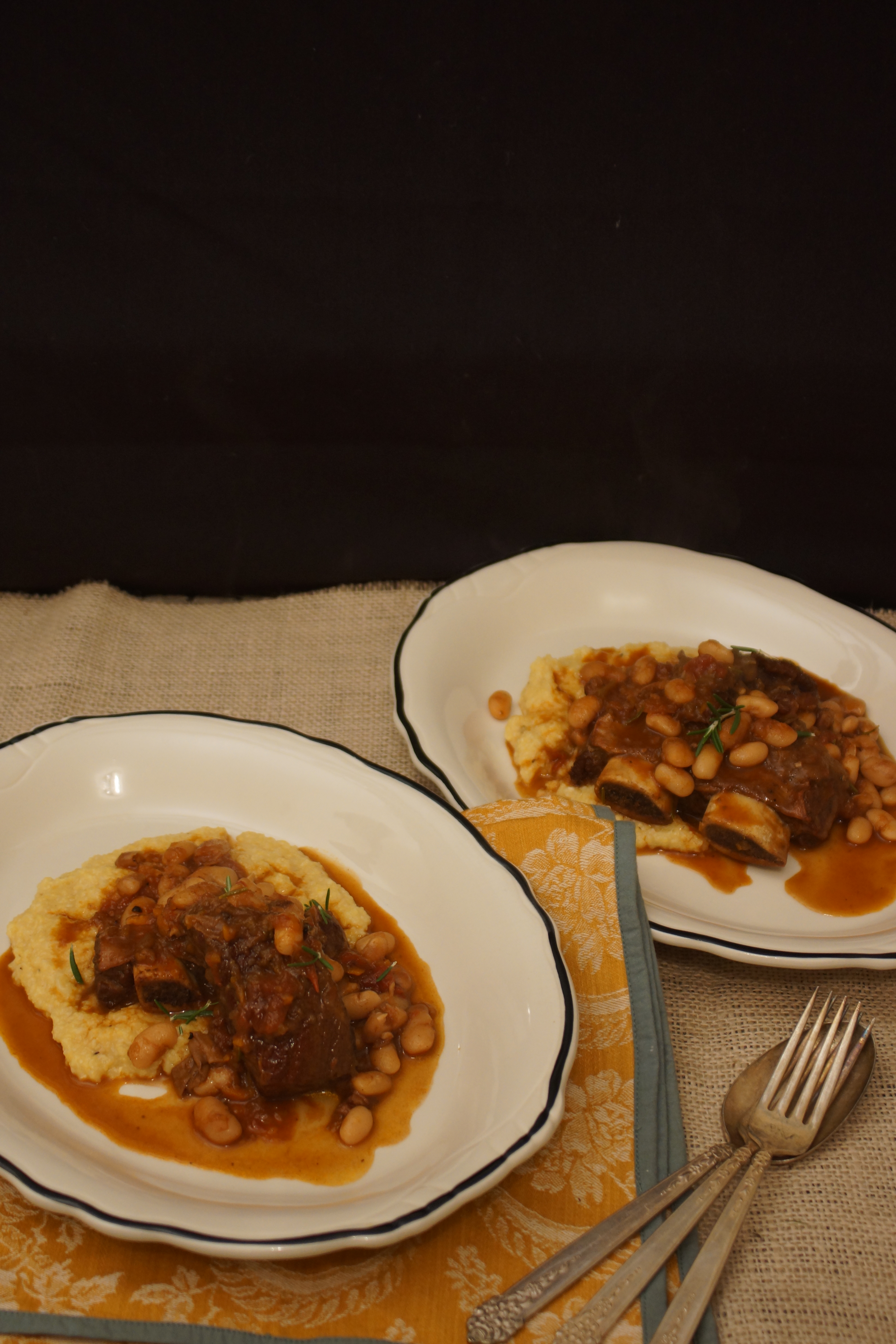 - Serve short ribs over polenta. Spoon cannellini beans and sauce over the ribs, top with a dusting of parmesan.