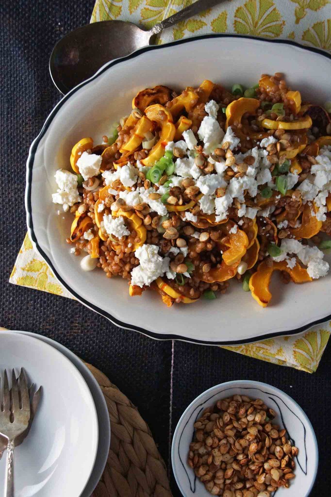Roasted Delicata Squash & Wheat Berry Salad with Feta