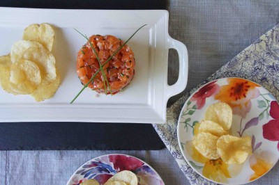 Salmon Tartare with Potato Chips August 8, 2013 | posted by Sarah | Leave a Comment tartare, recipe, fish, salmon, tuna, summer, strawberryplum Google+