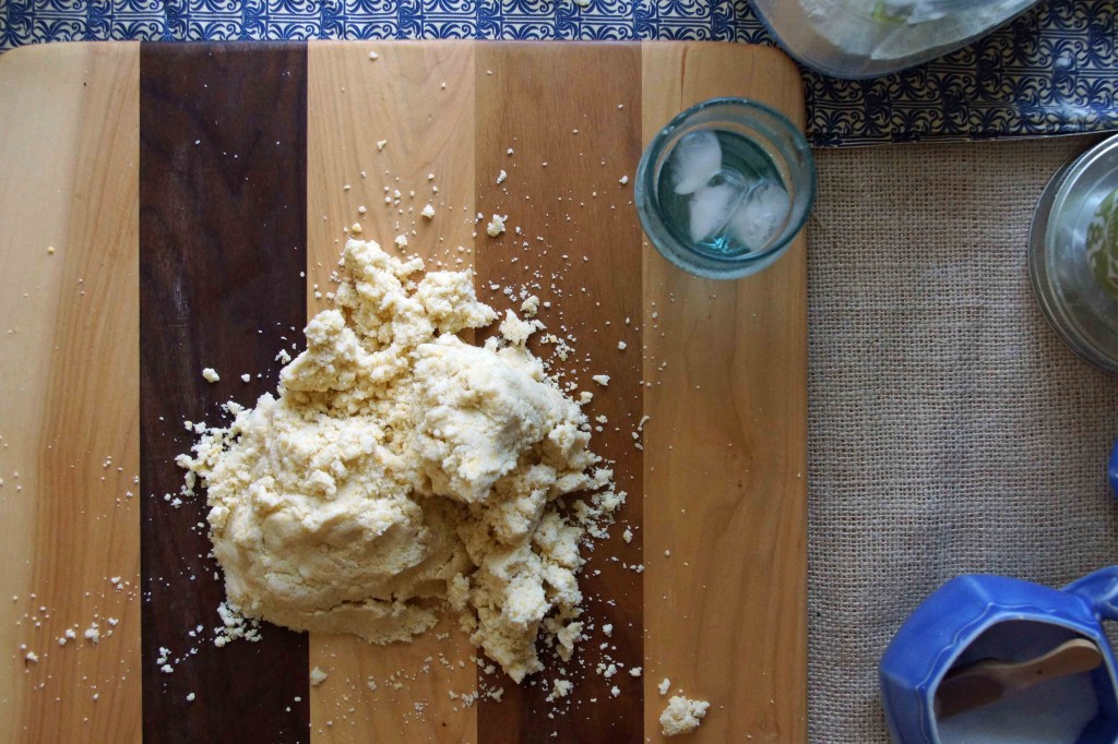 When the dough is just wet enough to stick together, dump it out onto a board or the countertop and press it into a disk. Wrap it tightly and let it chill out for a few hours. Dare you to follow its lead–kick your feet up and chill yourself out for a while.