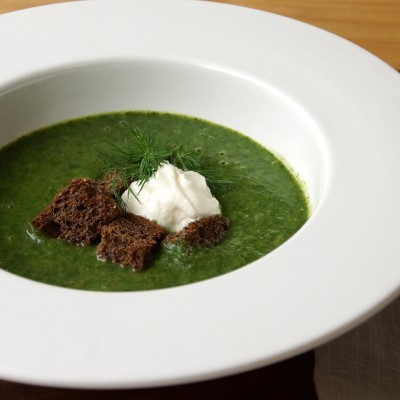Spinach & Dill Soup with Pumpernickel Croutons March 18, 2013 | posted by Sarah | Leave a Comment Google+