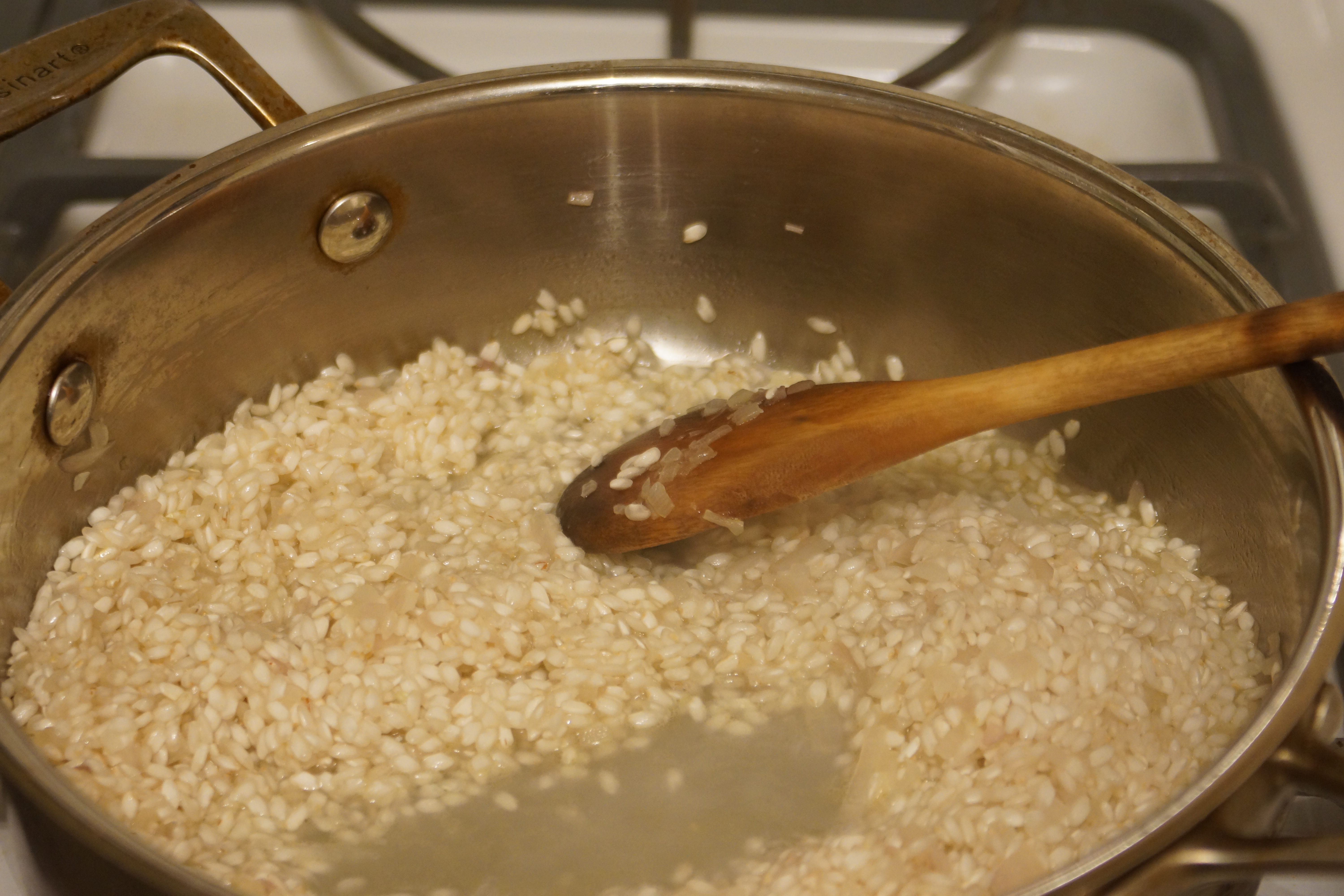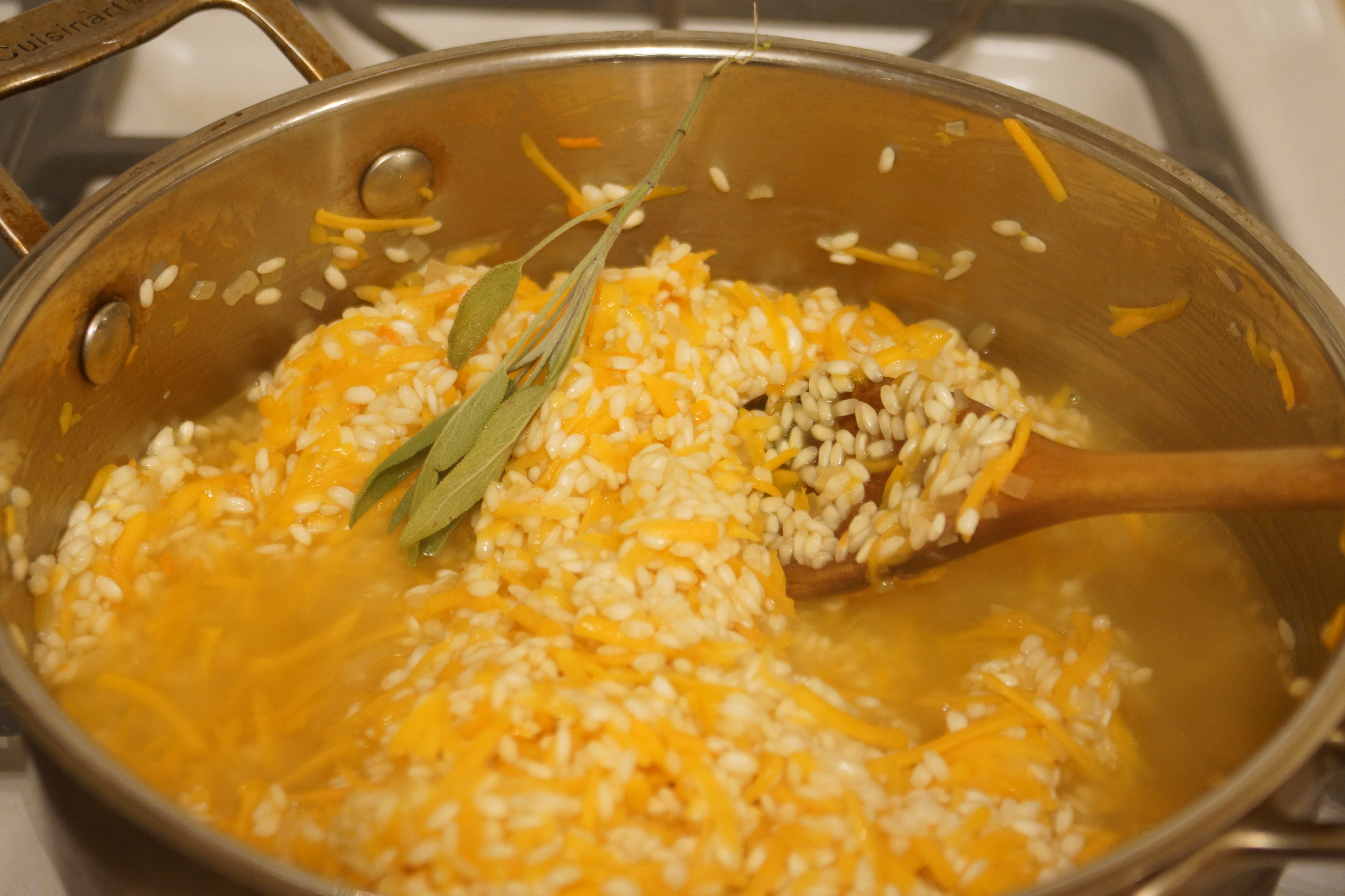Just a few ingredients: rice, shallots, sage, cheese. You’ll also need wine, broth, butter, and oil, but they’re a little camera-shy.