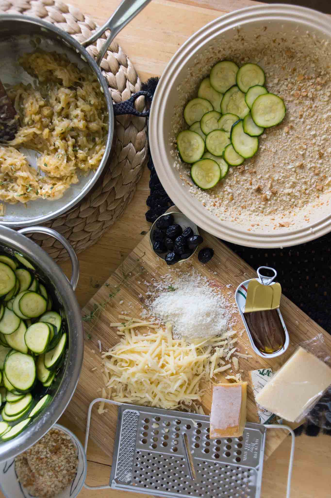 Assembling the Zucchini Gratin August 20, 2014 | posted by Sarah | Leave a Comment zucchini gratin, recipe, Italian, French, strawberryplum, anchovies, olives Google+